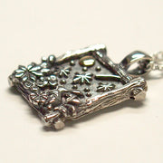The round moon in the pendant is made of 18k gold and acts as a subtle accent. The grass surrounding the rabbit is filled with cute flowers, giving it a three-dimensional look.