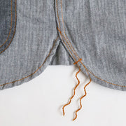 The collar is also unique, with a wider angle than that of a regular jean jacket.