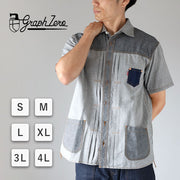 graphzero Denim jacket work shirt short sleeve black herringbone men's women's unisex [GZ-JWSS-0605-BKHB] Okayama Kurashiki Kojima jeans denim brand