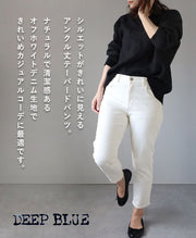 DEEP BLUE 10oz Stretch Denim Ankle Length Tapered Pants Off White [72926-1] Women's Okayama Jeans