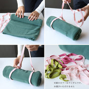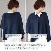 When unfolded, it is a simple square of 100 x 100 cm, but you can transform it into a poncho by making a slit in the middle. By fastening with a button and making it like a sleeve, it is difficult to slip off.