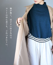 It doesn't look bulky even when worn under a coat, and because it has no sleeves, it's easy to move your arms around, yet it's still warm...When worn, the rounded lines drape for an elegant impression.