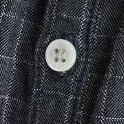 backThe fabric is made of herringbone denim with a checkered block check pattern.