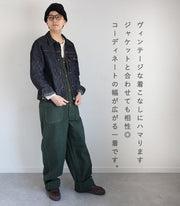 Made from 10oz red edge selvedge oxford, piece dyed green.It is woven slowly over time on an old shuttle loom.