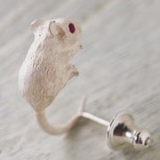 A fun design that looks like it's deftly clinging to its earlobe with its tail. The upside-down mouse looks really cute♪