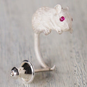 DECOvienya handmade accessories mouse earrings silver one ear white [DE-096W]