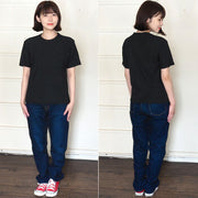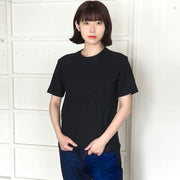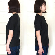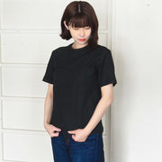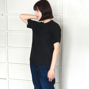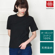 Hand-dyed plain color, loop-knitted, organic cotton, short-sleeved T-shirt, "Constitution Black" for women [OT-KENBOU-LADIES]