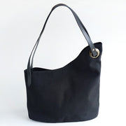 Basic and easy to use, all black. The casual texture of the canvas and the high-quality atmosphere of the genuine leather of the handle are just the right balance. The antique metal fittings are not overly decorated, giving a mature and sophisticated impression.