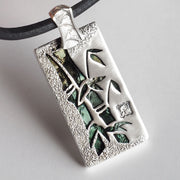 The bamboo leaves sway in the wind, and there is a mysterious atmosphere when you are enveloped in the quietness of the bamboo forest. It is a necklace with a casual atmosphere that combines a rectangular pendant top with a design of bamboo stretching toward the sky and Italian lace leather.
