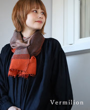 | This wool scarf is woven using the original technique of "vertical yoroke mojiri weaving" and comes in colors that evoke the deepening of autumn. |