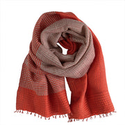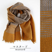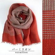 This short wool scarf is woven using the original technique of "vertical yoroke mojiri weaving" and comes in colors that evoke the depths of autumn.
