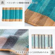 The surface is made of elegant herringbone-patterned gauze, while the back is made of organic cotton pile for a soft feel and high absorbency.