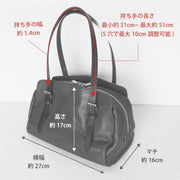 | size | Width: about 27cm x height: about 17cm A gusset: Approximately 16cm Handle length: Minimum approx. 31 cm to maximum approx. 51 cm (adjustable up to 10 cm with 5 holes) Handle width: about 1.4cm Weight: Approximately 550-600g (There may be individual differences due to natural materials) |