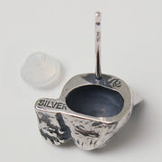 | From Arama Roots of Silver Koubou, a cat ear piercing with lovely round eyes is now available! The model for this earring is Pixie, the beloved cat of Arama Roots, who left for heaven in February 2012. These are special earrings made with love by the artist. The three-dimensional construction makes it cute from any angle, and the inside is hollowed out so that it doesn't feel heavy when worn. Light and comfortable to wear, small size. Easy to match with various styles, you will want to wear it anytime, anywhere... A soothing item perfect for cat lovers♪ The gap between the cool atmosphere of the silver material and the cute atmosphere of the cat is GOOD! The unisex design can be worn by both men and women. |
