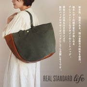 REAL STANDARD life Kurashiki canvas No. 9 x Himeji leather “BC Luton HELMETBAG” L size green shoulder tote bag [JT13007]