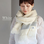 This scarf is randomly woven with four attractive weave patterns: herringbone, waffle, schuss, and nanako weave.