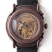 Part of the front is skeletonized, allowing you to see the intricately assembled gears moving.