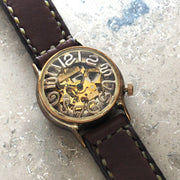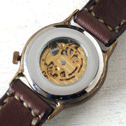 Watanabe Kobo handmade watch automatic winding back skeleton men's brass 32mm hand-stitched belt [NW-BAM032]