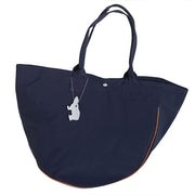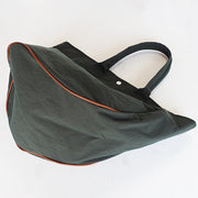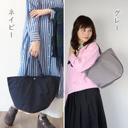 | Made from water-repellent nylon fabric, this tote bag is lightweight and easy to use. The round shape and asymmetrical design are unique. |