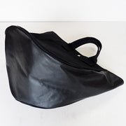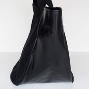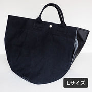 | A tote bag made from No. 9 canvas and Tochigi leather from Kurashiki, Okayama Prefecture. A unique asymmetric design with a rounded form |