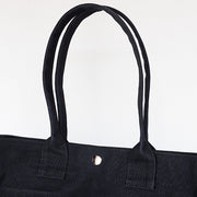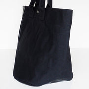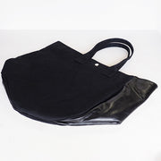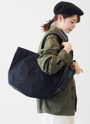 | A tote bag made from No. 9 canvas and Tochigi leather from Kurashiki, Okayama Prefecture. A unique asymmetric design with a rounded form |