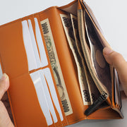 | A glossy gradation produced by hand polishing is attractive A long wallet that feels like high quality cowhide leather. |
