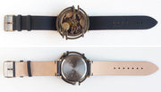 | Functions and Materials | [Movement] Japanese quartz, 3 hands [Case] Brass / Case back and buckle are stainless steel [Belt] Vegan leather (black) [Windshield] Glass |