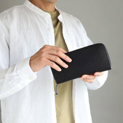 [2 colors] ZOO wallet, long wallet, shark leather, round zipper, long wallet [Z-ZLW-136], made from blue shark from Kesennuma, Miyagi Prefecture, for men, women and unisex