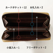 | Storage | ・2 bill compartments ・Coin purse x 1 ・12 card slots ・2 free pockets |
