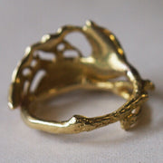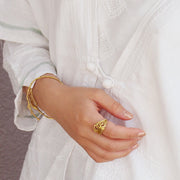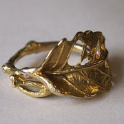 Introducing a bangle with a leaf motif that wraps around your finger. The leaf has worm-eaten veins... The realistic design is interesting, just like a real leaf.