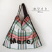 | ふわふわ素材とチェックが可愛い、秋冬におすすめな大きめトートバッグ 心が明るくなるような「Merci」の文字がポイントです。 |