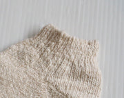 | A pair that feels the warmth of the softly spun Garabo. These sneaker socks are knitted with a special machine with a small number of needles. Therefore, it has a fit that gently wraps the entire foot without feeling too tight, making it less tiring. In addition, the fabric stretches well and is easy to wear. Good ventilation and very comfortable to wear. Sneaker socks with a rustic and gentle texture that allows you to feel the blessings and warmth of nature. |
