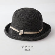 The brim of the hat is decorated with a ribbon in a soft color, giving it a simple yet sophisticated look.