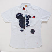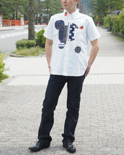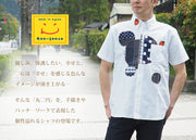 GEN SENCE Hand-painted Yuzen & Remake "Round Circle Shirt" Button Down Shirt Short Sleeve White Men's [GS-SH-SS-01-WH]