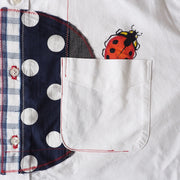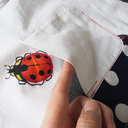Button-down collar accented with a ladybug at the neck.