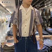 [3 colors] graphzero Italian collar short-sleeved shirt bandana pattern black navy red men's ladies' unisex [GZ-ITLS-0605]