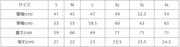 S: Shoulder width 41 Length 59 Width 53 Sleeve 21
