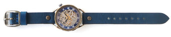 Materials and Functions Movement: Automatic with mechanical and hand-wound function Windshield: Glass Case: Brass Back: Stainless steel and glass Belt: Italian cowhide (blue)