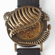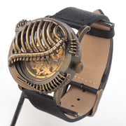 | A collaboration between DEDEGUMO and shichigoro, an illustrator who depicts a fantastical mechanical world. A mechanical watch with an artistic presence, with ribs covering the dial. |