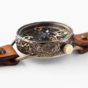 The brass case will change over time as you use it, so you can enjoy the change in texture. The eye-catching mechanical design is perfect as an accent for your outfit!