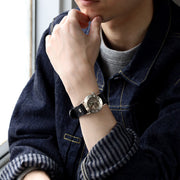 | A hand-wound wristwatch with a warm feel that allows you to see the movement ticking along with the ticking sound! Hand-wound wristwatches are less accurate than quartz ones, but you can see and feel the accumulation of ingenuity in how the power of the mainspring drives the movement. |