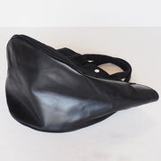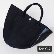 トートバッグには珍しい左右非対称なデザインが特徴。中身が何も入っていないと傾てしまいますが、荷物を入れて重心が来ればまっすぐ置くことができます。この独特なのデザインも、他にはない魅力の一つです。