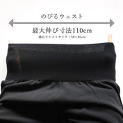 | サイズ | フリーサイズ(M~LL相当) 【平置きサイズ】 ウエスト丈:約15cm/股上:約31cm/股下:約68cm 【最大伸び寸法】 ウエスト:約110cm(適応サイズ58~85cm) ヒップ:約130cm(適応サイズ82~105cm) 重さ:375g ※サイズは、若干の個体差があります。 |