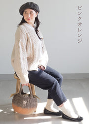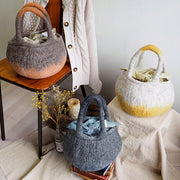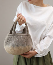 バッグの持ち手と下半分のカラー部分には染料を使用しておりますが、それ以外の部分には染料を使用しておりません。羊毛そのまんまの優しい色味です。