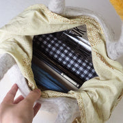 ミシンを使わず、羊毛のみでつながった持ち手。