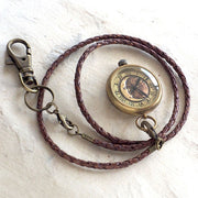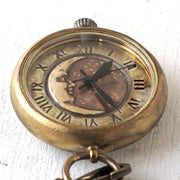 渡辺工房 手作り懐中時計 “Crescent Moon-MB” メンズブラス 甲丸ケース 革紐チェーン [NW-379CM]