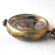 ![]() オリジナリティあふれるお月様の文字盤 ![]() リューズは玉ねぎ型です。 ![]() 味わい深い真鍮のケースが魅力的。 ややザラ感のある、するんとした甲丸ケースタイプ。 ![]() 裏蓋はステンレス。 ![]() ネックレスのように着用したり、バッグに忍ばせたり。 ![]() インテリアとしてもお洒落です。 (写真の革ひもカラーはブラウンです)