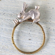 小さいながらも、野生の生き生きとした雰囲気と可愛らしい表情を持つ、シルバーのウサギモチーフのリングです。チャームに寄り添う姿が印象的です。