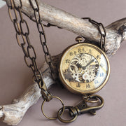 フルスケルトンの機械的な部分と懐中時計のアンティークさが魅力的な一品