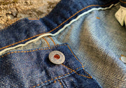 コインポケットやフロントポケット、バックポケットのポケット口にはセルビッチ耳を使用し、帯裏にも贅沢に耳付きのデザインにしています。